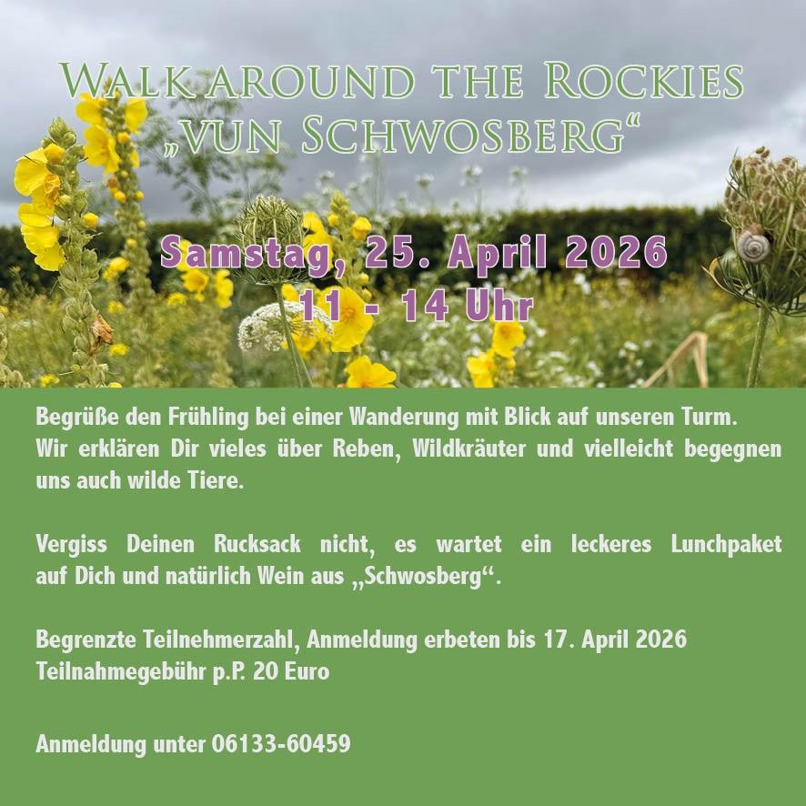 Begrüße den Frühling bei einer Wanderung mit Blick auf unseren Turm. Wir erklären Dir vieles über Reben, Wildkräuter und vielleicht begegnen uns auch wilde Tiere.