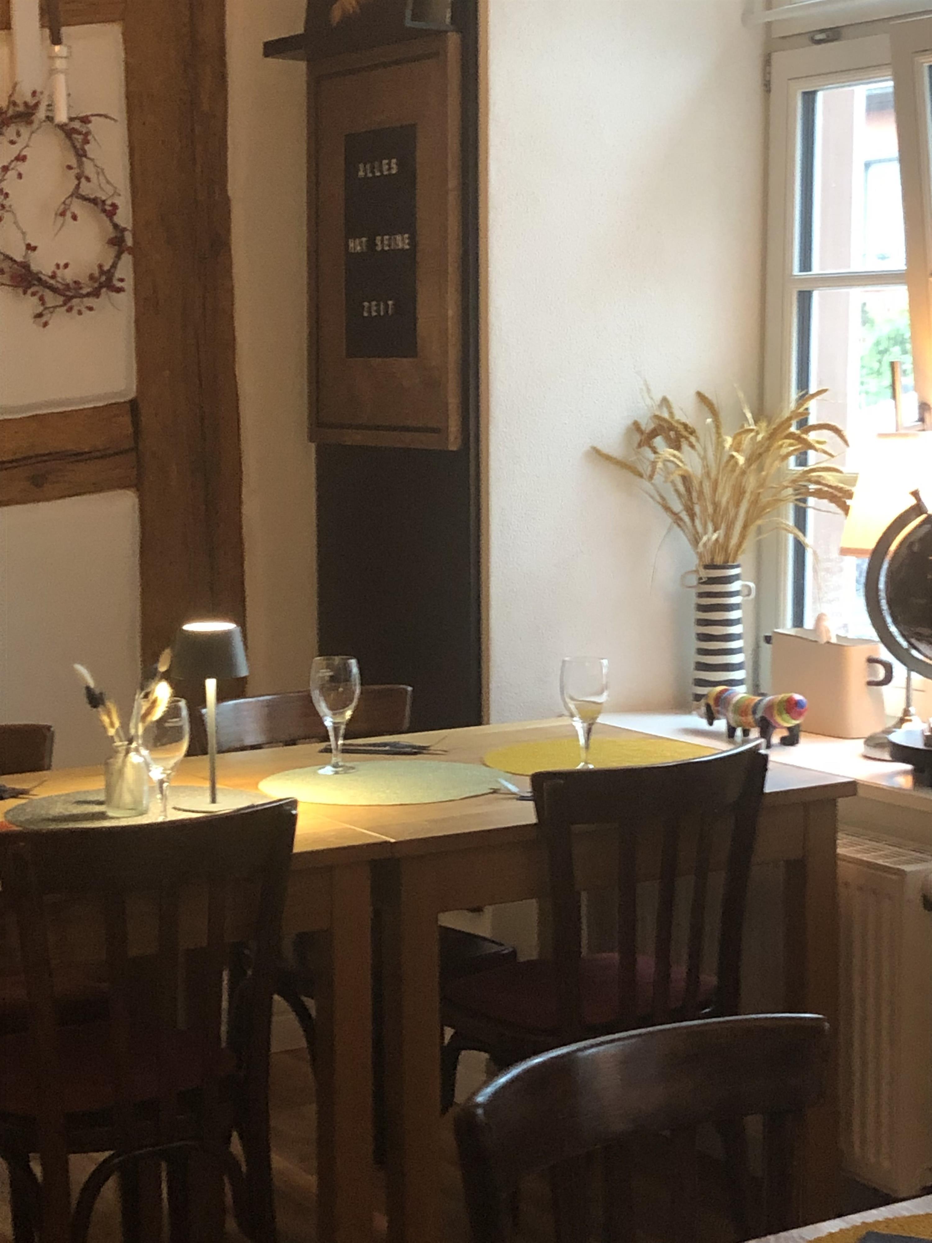 Lassen Sie sich von einer feinen Auswahl deutscher Klassiker mit französischem Touch kulinarisch verwöhnen. Ob drinnen in den gemütlichen Räumen oder draußen im idyllischen Innenhof – hier genießen Sie entspannt köstliche Speisen und eine große Auswahl an Getränken in besonderem Ambiente. An Sonntagen von 14 bis 17 Uhr gibt es hausgemachte Kuchen und Kaffee.