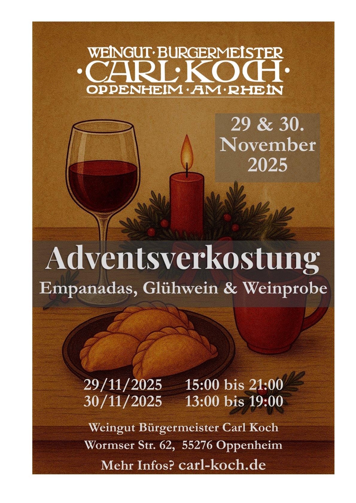 Wir öffnen unsere Vinothek für euch! Genießt ein Glas Glühwein, probiert unsere Weine und lasst euch von frisch gebackenen Empanadas verwöhnen. Entdeckt unsere Räumlichkeiten, kommt mit uns ins Gespräch und nutzt die Gelegenheit, am Veranstaltungstag von 10 % Rabatt auf alle Weineinkäufe zu profitieren. Feiert mit uns die Adventszeit in gemütlicher Atmosphäre!